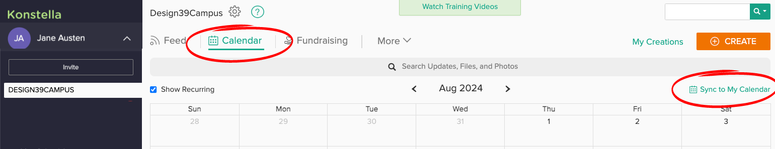 Web: Click Design39Campus from the main menu, click Calendar, and then click “Sync To My Calendar” just to the right of the month name.